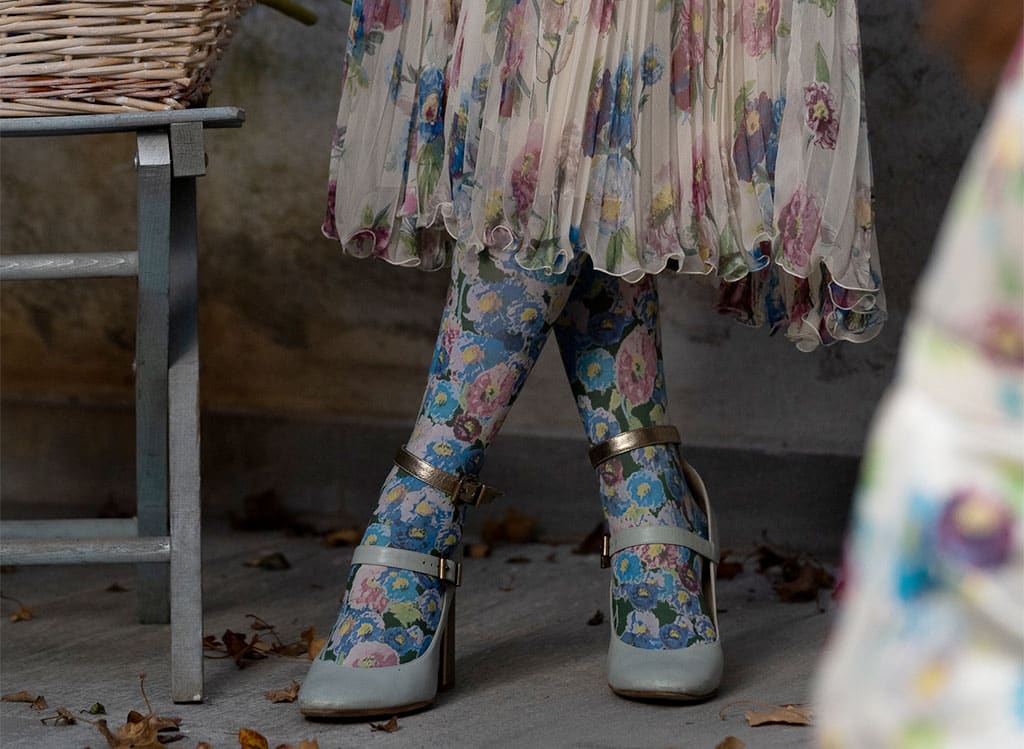The fashion line has been enriched by many different artisanal accessories such as hand-printed scarves, hats, gloves, shoes, hair bands and accessories, printed stockings, phone covers.