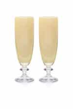 This set of two chalice flute glasses is crafted in a vibrant shade of ambra. The glass features a smooth finish on the exterior.