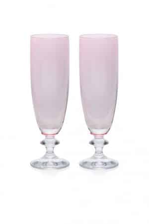 This set of two chalice flute glasses is crafted in a vibrant shade of blue. The glass features a smooth finish on the exterior.