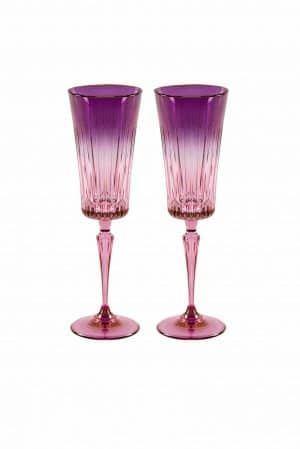 This set of two chalice flute glasses are crafted in vibrant shades, with iridescent gleam.