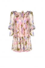 Floral Printed Chiffon Mini Dress With Balloon Sleeves