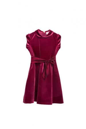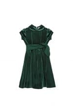 Classic Dark Green velvet dress with classic collar and short sleeves.