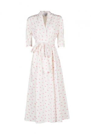 This midi Luisa dress is realised from flower printed jersey. The Luisa dress is designed for a relaxed and self-adjustable fit, It has a plunging V neckline and it comes with a jersey printed belt.