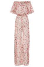 This jumpsuit is made from airy floral-print lace into a flattering off-the-shoulder silhouette that’s ruched for comfortable day-long wear.