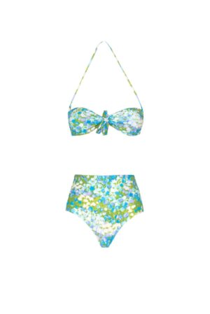 This two-piece swimsuit is designed in pink Monet printed lycra. It has a triangle bikini top and low waist slip with ties. You can wear it matching with shorts and pareo in the same print. Product Details • Soft padding • Adjustable ties • Composition: 86% PA 14% EA •…