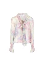 Bow-detail Printed Chiffon Shirt in Abstract Flowers