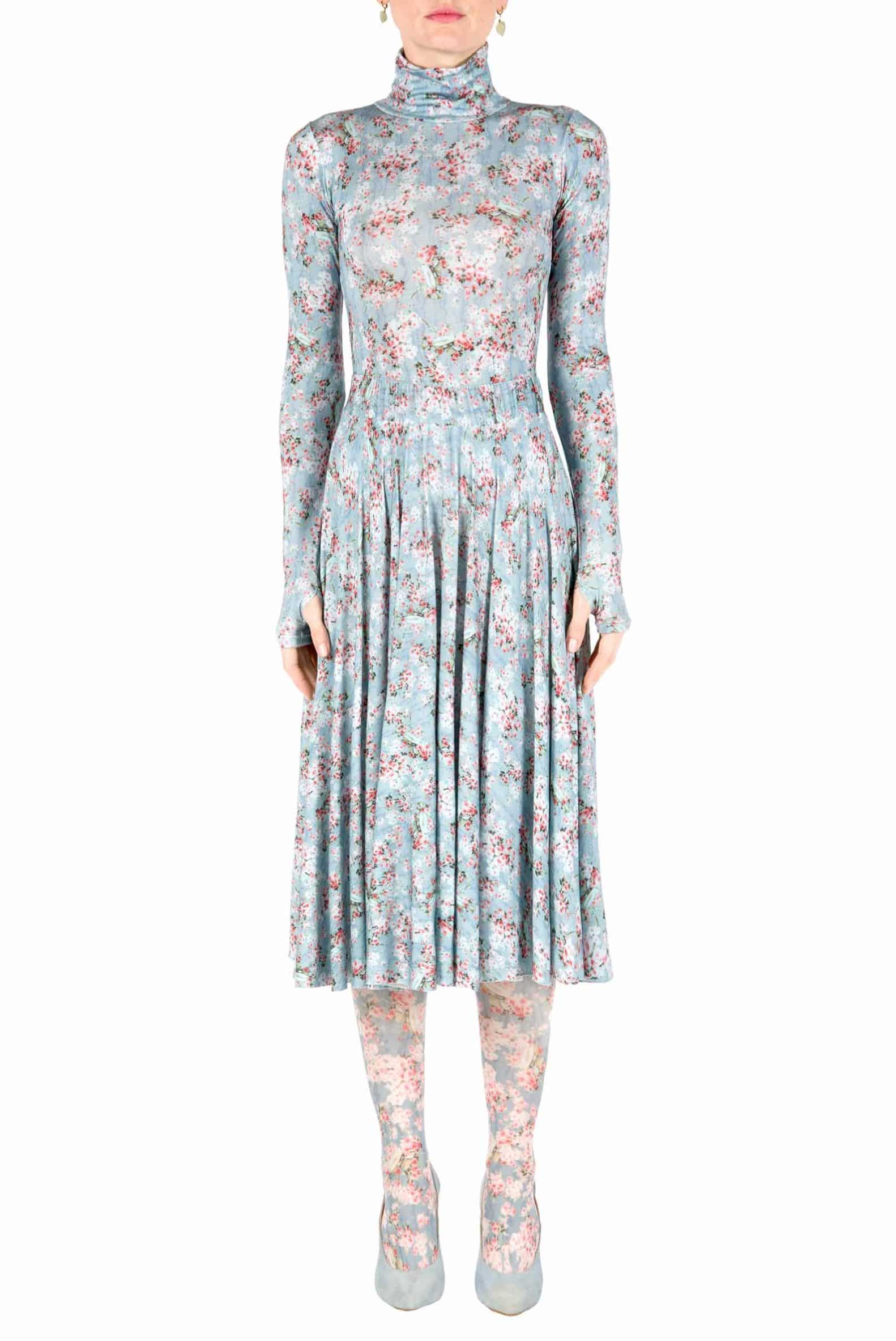 This polo shirt is made by printed jersey. It has a V opening neckline in the front with little buttons. You can combine it with our midi pleated jersey skirt.
