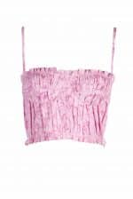 This top is made with printed stretch linen; it is draped all over and has underwires for a bra structure.
