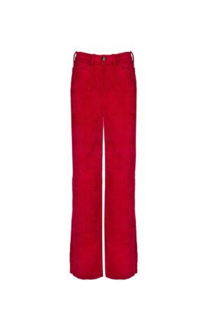 These palazzo pants are made from corduroy printed with Flower Garland motif. Bright and bold, they are a statement piece. With side pockets and comfortable fit, they are great to wear with a turtleneck or a jean jacket.